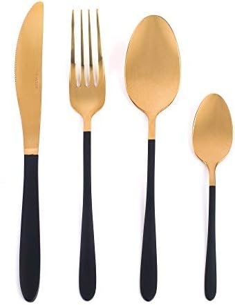 - Elegant Design: Featuring a glamorous combination of gold mirror polish and black-coated handles, this set makes an impressive statement on any dining table, ideal for sophisticated dinner parties and everyday use.