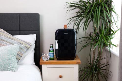 Compact 10L Portable Small Fridge | 12v & 240v | Efficient Quiet Cooling System | Ideal for Bedroom, Office, Beauty & Car | (Chequer Black)