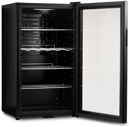 - Convenient Design Features: The fridge comes equipped with 4 strong removable and adjustable chrome wire shelves, allowing for flexible storage options. The internal LED light illuminates the fridge, showcasing your beverages beautifully. Additionally, the included security lock and key (2 keys supplied) keep your drinks safe and secure, even when you’re away.